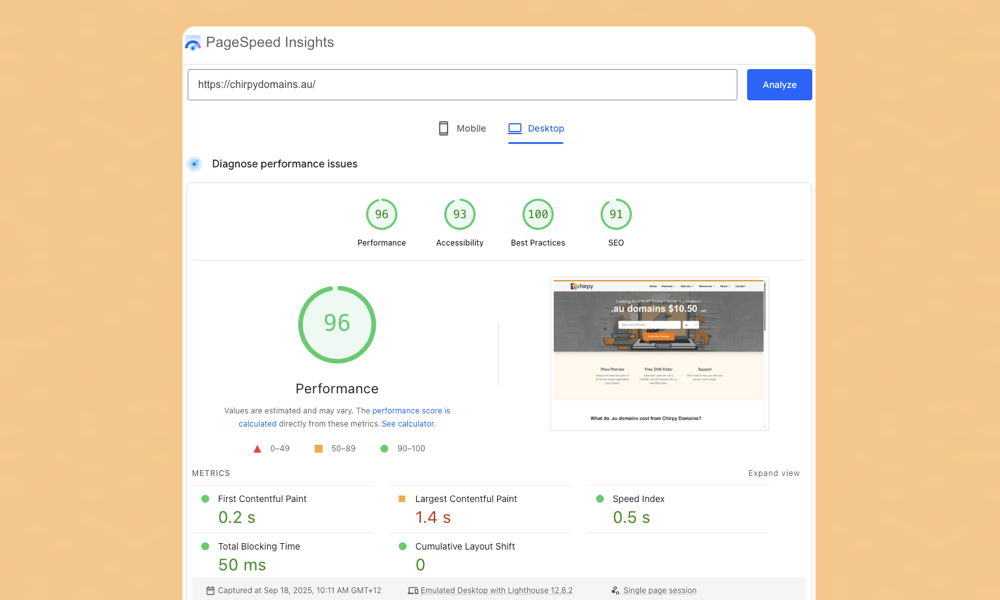 Sooner or later we will hit the limit of the “one page title for the whole site” gamble. We’ll switch to page-by-page titles soon, the way websites ought to be, and see whether the acceleration of non-home pages makes up for any weakening of our overall message. We’re optimistic, since the change will realign our site with best practices and surface deeper content like blog posts about auDA’s dispute policy and different types of DNS records.