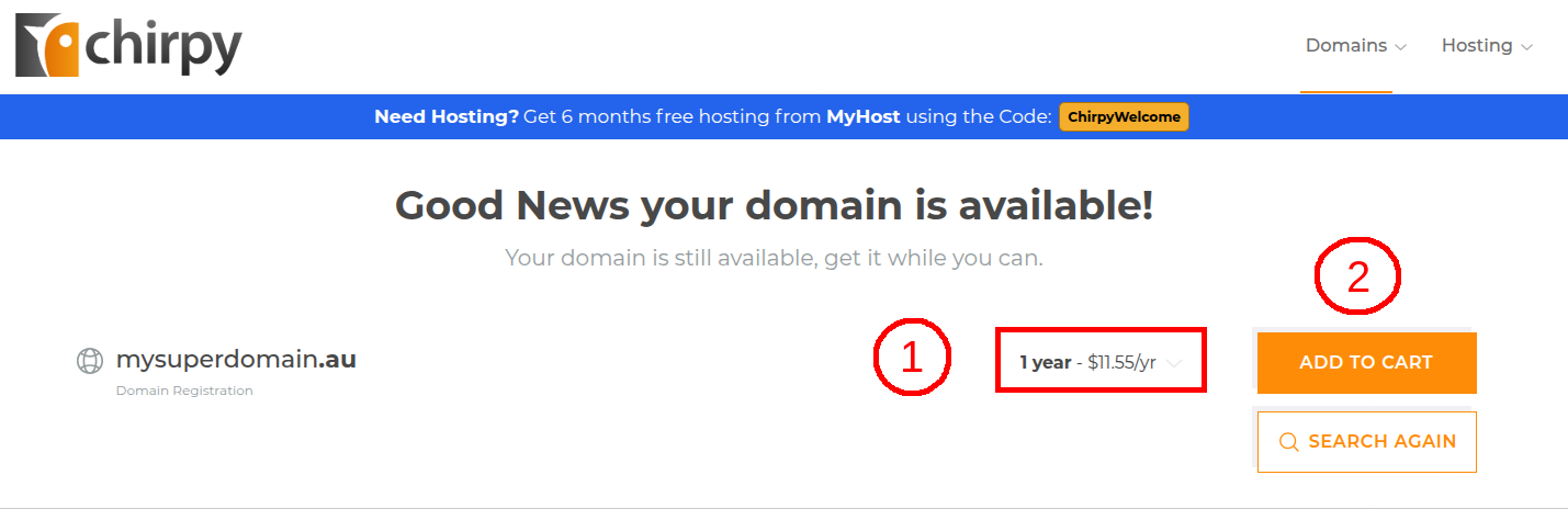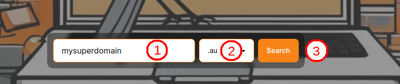 Once you're ready to register, visit our home page, where you'll find the Domain search box. In this example, we'll register the Domain mysuperdomain.au.