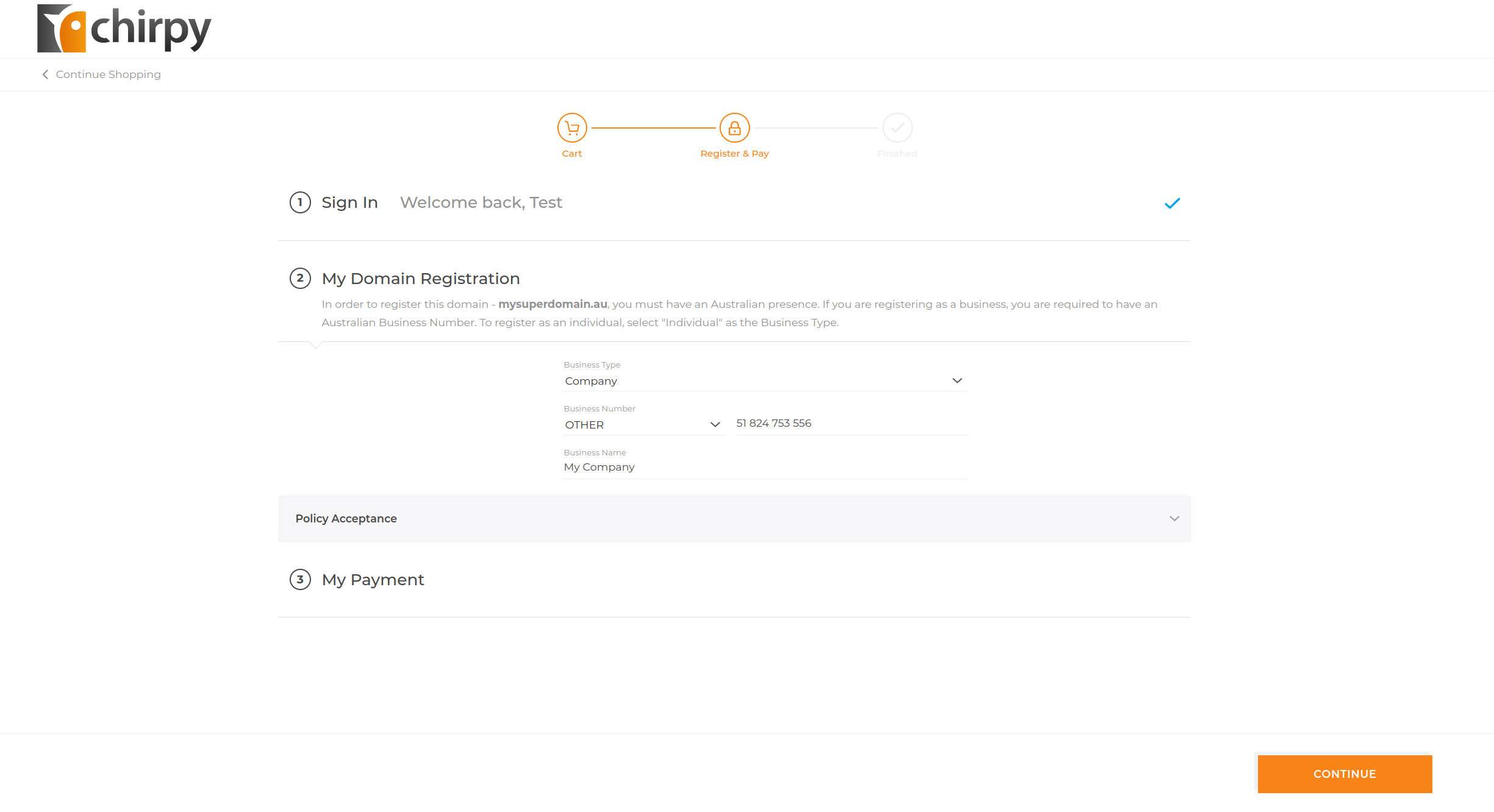 You will need to check that your business or organisation details are correct and that you are eligible to register the Domain.