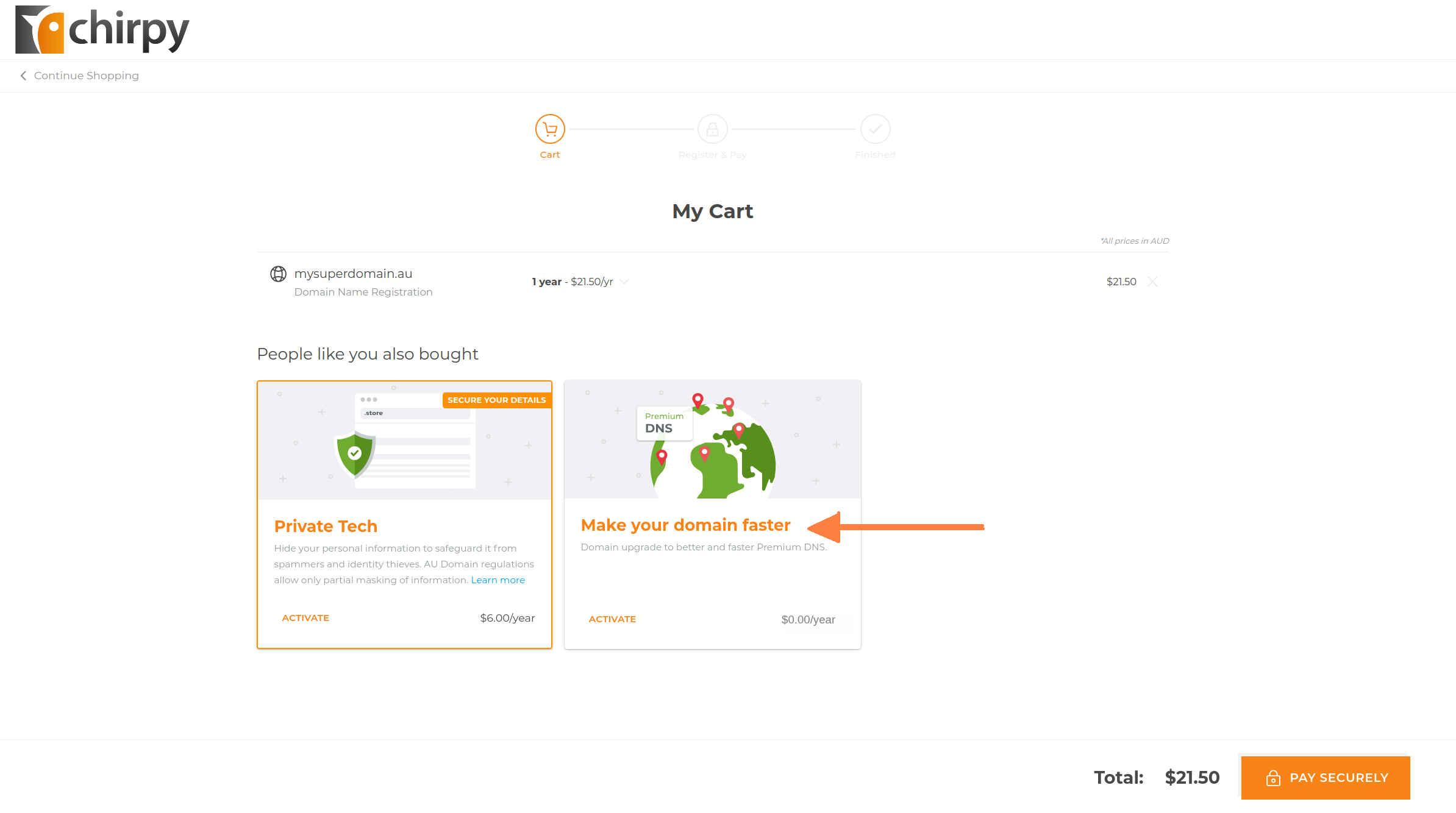 Click Make your domain go faster to add Premium DNS to your purchase.